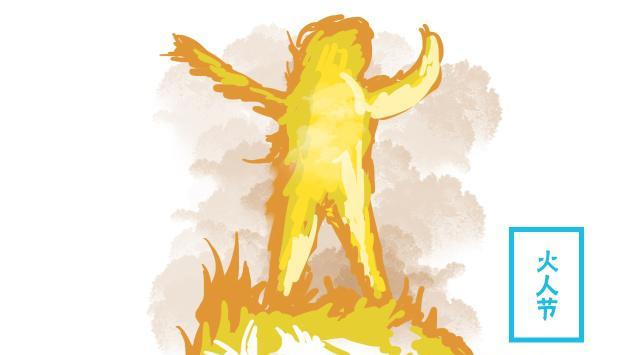 美国内华达州的黑石沙漠,平时一片荒芜,可一到每年的8月底9月初,就会有数之不尽的人往这里涌来。他们来这里没有别的目的,只是为了参加一年一度的“火人节”。“火人节”兴起于1986年,宗旨就是:包容、创新、时尚、反传统、反消费。它开始时间为每年9月的第一个星期一,这一天也正好是美国的劳动节。节日会一直持续8天,参加的游客必须自带干粮和生活用品,因为那里只卖冰和咖啡。