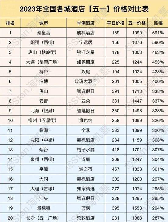 五一期间部分酒店涨价情况对比 / Stan淘机票