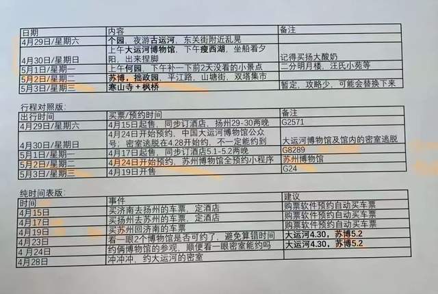 但是出游并没有因为主动“阉割”了行程就变得顺畅。酒店和返程车票都订好了,扬州大运河博物馆的门票凌晨卡点预约也终于约上了,但最关键的去程车票,阿北却一直抢不上,候补、VIP抢票、专人抢票等各种途径都在尝试,一直都没能成功。