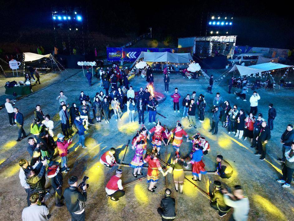 帐篷露营季竹竿舞表演。(陈小阳 摄)