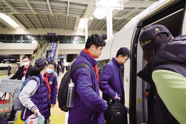为进一步提升师生们出行体验,让研学有意思更有意义,铁路部门精心安排了接待流程和线路,开辟了“绿色通道”,加强乘车组织,在候车厅划分专门区域,同时选派业务优、服务好的导游在列车门口、站台、电梯口进行引导和服务,确保安全有序进站乘车。列车上,为迎合不同年龄段的口味,特别提供了牛肉面、汉堡、炸鸡等多种高铁餐食,让师生们在旅途当中也能体验到舌尖上的美味。