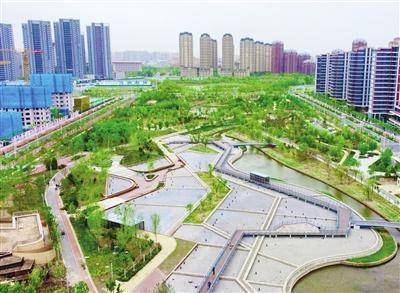 记者在采访中了解到,中央绿轴公园景观设计定位为“城谷绿芯”,结合海绵城市理念,通过微地形,塑造出公园的基本骨架,带动工业棕地向城市核心的发展。