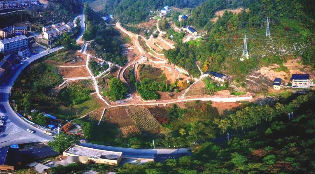 巴东县茶店子镇“古驿茶店农业观光园”一角航拍图