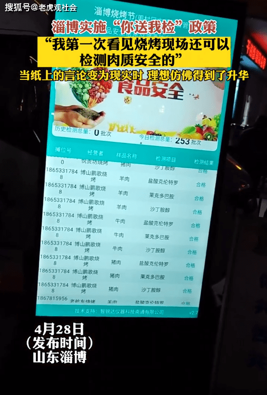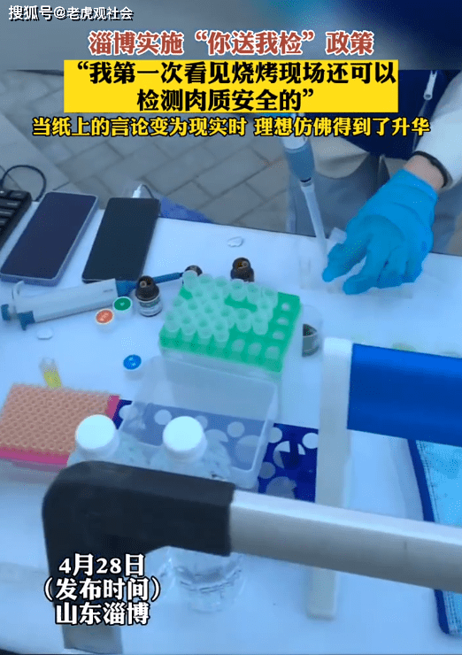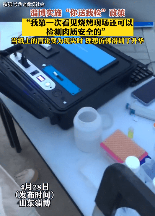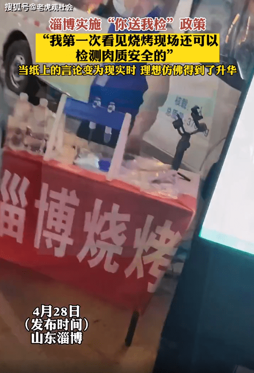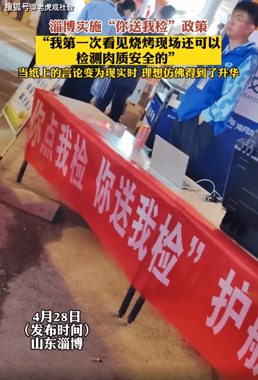 4月28日,山东淄博烧烤节开幕之后,当天就有网友拍摄到了一路边摊点,为了广大外地游客吃得放心,竟然进行了一次“你点我检,你送我检,护航淄博烧烤”的活动。