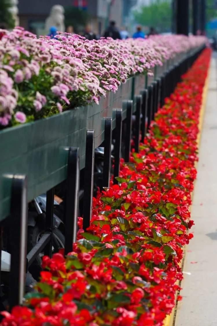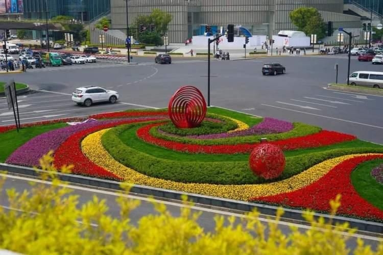 据了解,今年五一,徐汇区绿化市容部门共使用了12万株花卉对徐家汇片区进行布置。从徐家汇人行连廊向下俯瞰,无论是标志性的三角地绿地,还是肇嘉浜路沿线,亦或是人行连廊的下方都又一次变得花团锦簇。橙色、粉色、亮红色、玫红色、紫罗兰色的何氏凤仙、天竺葵,搭配上大花海棠、孔雀草等景观效果较好的春季花卉,让整个商圈目之所及处皆为美景。热烈活泼的色彩搭配,更是让暖阳下徜徉在花海的市民游客不觉心生欢喜。