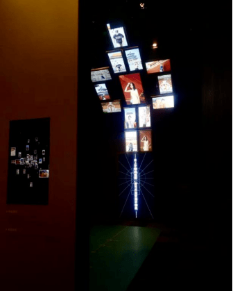 “我在中轴线上”是一个即时互动装置,观众可通过“一步一景”在中轴线上游历,然后与喜欢的景点合影打卡。所拍照片将幻化为一只象征中轴线守护者的雨燕,飞入组成“中”字形的天屏中,并还原为照片留存下来随机展示,成为装置的一部分。
