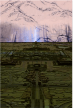 在巨型竖屏上,观众的视线跟随中轴线不断向北延伸,直至燕山山脉,由中数艺DAC艺术家董亚楠带领中央美院绘画团队对《燕山八景图》进行数字化重绘,创作团队对燕山山脉进行卫星定位和三维动画实景重建,呈现燕山上的四季景观和日夜轮转。