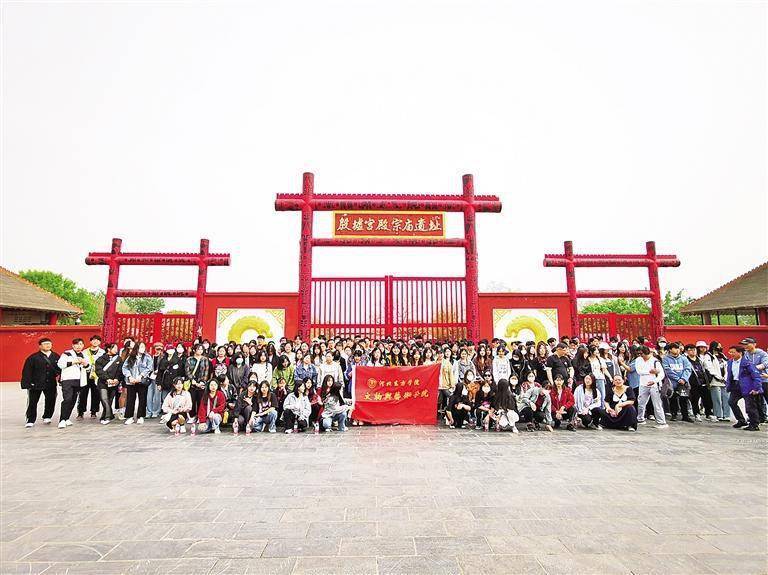 河北东方学院研学团队在殷墟宫殿宗庙遗址合影留念