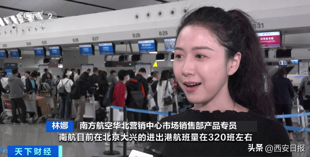 南方航空华北营销中心市场销售部产品专员 林娜:南航目前在北京大兴机场的进出港航班量在320班左右,订座率已经达到了80%。还有部分旅游热线,像是飞往珠海、汕头、大连这样的航线,客票都已经提前售罄了。