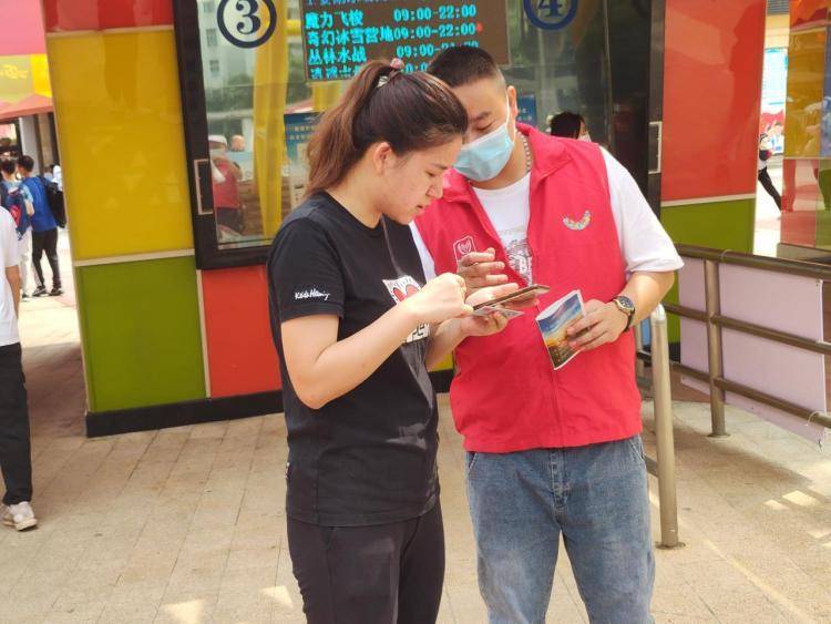 假期第一天,深圳某主题公园,游客数量众多,有几名游客在排队等候时乱扔果皮纸屑,志愿者发现后及时上前劝导,经过耐心沟通,游客捡起地上的垃圾扔进了附近的垃圾桶。在游客密集的地方志愿者向市民游客发放文明旅游宣传小册、海报等,普及文明旅游知识,制止餐饮浪费等宣传教育,让公共意识、规则意识、节约意识、文明意识深入人心,大力倡导文明旅游、绿色旅游、负责任旅游,引导广大市民游客主动抵制景区破坏行为。