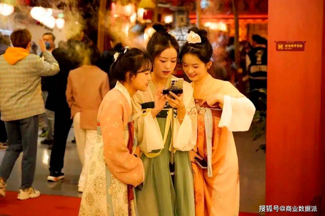 去年五一刚一营业就走红的长安十二时辰街区,以古装NPC表演和换装沉浸式体验而闻名。据工作人员透露,今年,景区内换装比例从30%涨到了50%,“附近的换装店从7家左右,涨到了60多家。”