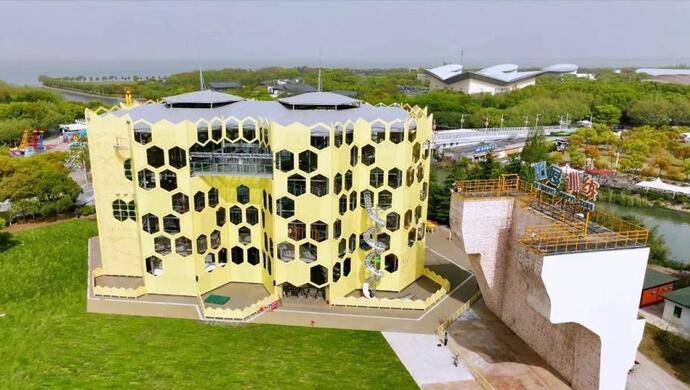 据介绍,五一假期期间,蜂巢塔将率先开放一层宇宙探索空间和高空探险区域。蜂巢塔,因其外形类似蜂巢而得名,同时又寓意参与者像蜜蜂一样勇往直前、富于合作精神;塔内使用150吨玻璃打造了6层通透的“水晶”平台,玻璃面积共计约3000平方米,构成打卡拍照的高颜值。