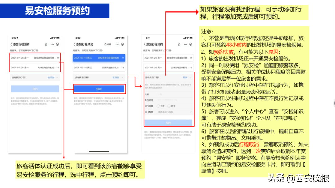 第四步:首次预约旅客需回答三道安检问题,答完后即可预约“易安检”服务,答题的准确率不影响易安检服务的预约率。