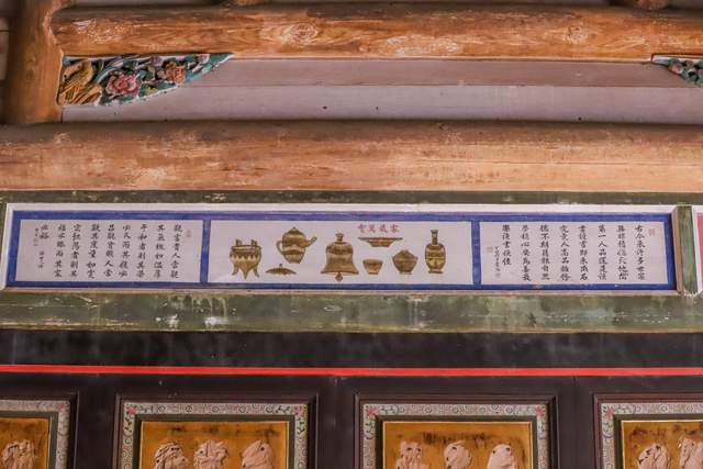 建筑装饰有精美的金漆木雕、书卷灰塑、楹联壁画、堂号匾额,不仅起到美观的作用,还传递出浓浓的文化气息,让居住于此的家族成员领悟做人做事的道理。