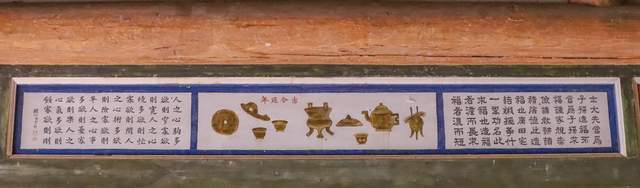 书卷绘画题材多样,边沿另有深具象征意味的水墨画,卷中更有道德教化、励志格言、吉祥颂语等内容,采用传统灰塑工艺,制作精细,装饰华美。