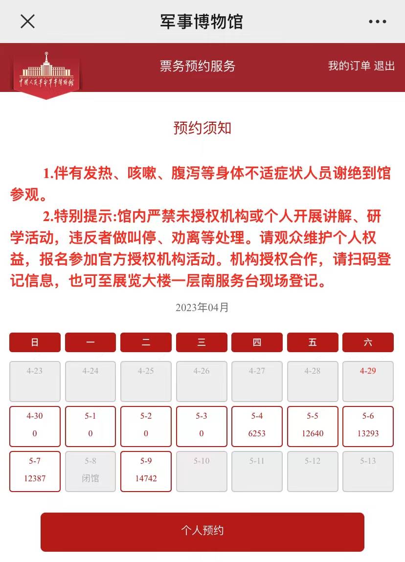 截至发稿,“五一”假期期间,故宫博物院、恭王府博物馆、颐和园、国家博物馆、军事博物馆门票均已售罄。