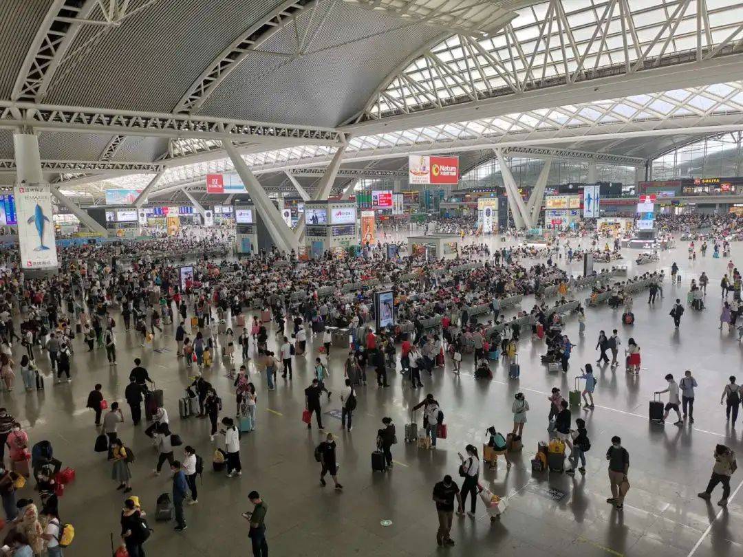 4月29日,广州南、深圳北、广州东、深圳、长沙南、珠海等主要车站都迎来了超大客流。深圳北站发送旅客高达28.8万人次,创建站以来单日最高纪录。