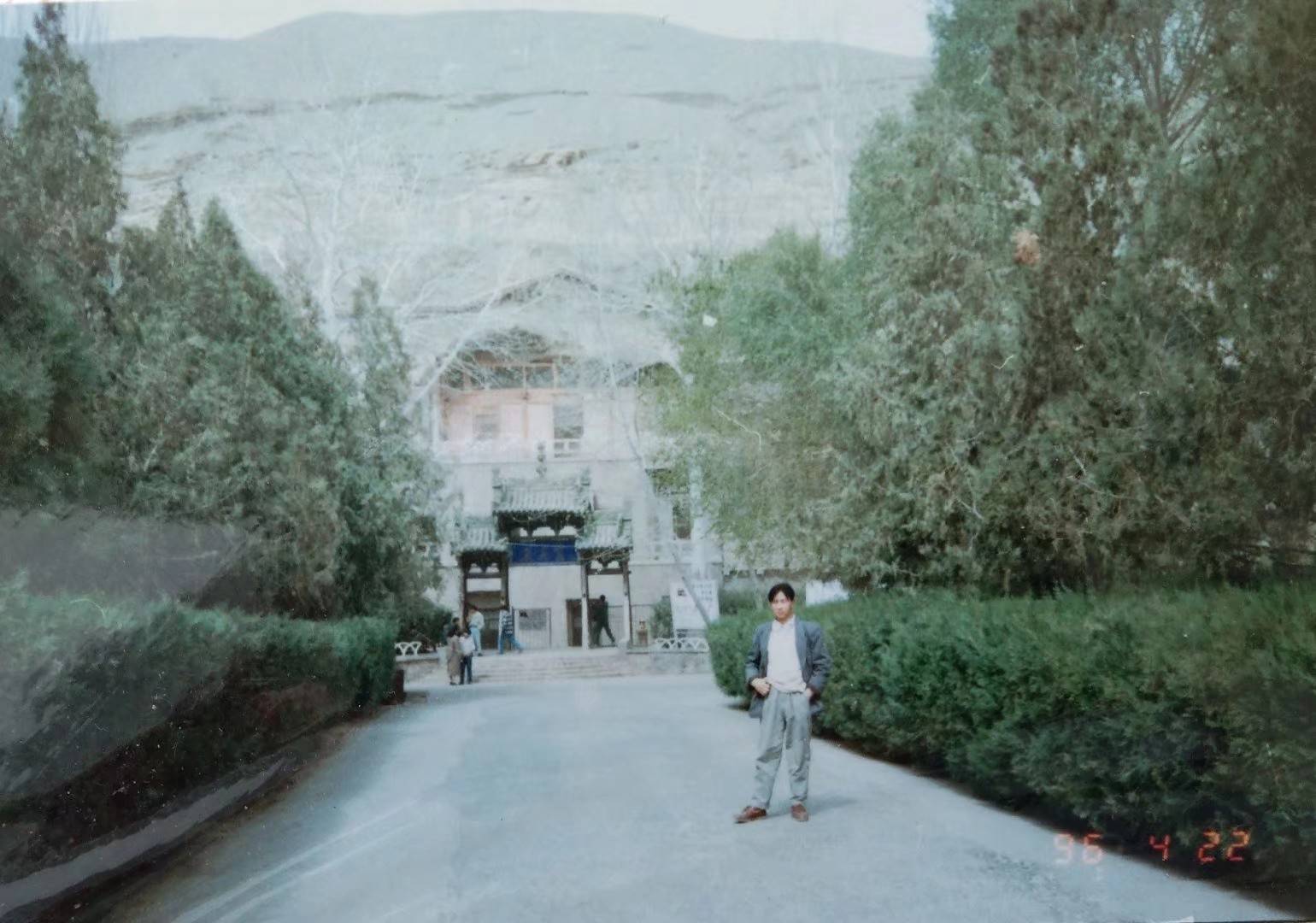 1996年4月,也是我被勤工俭学受聘到陕西省计划生育委员会爱人杂志社不久,因工作的安排,我去了一趟古丝绸之路之上的艺术宝库——甘肃敦煌莫高窟。从我酷爱美术之初,从不少的史论文章当中就早早的对莫高窟有了些许的接触,了解到前辈大师如常书鸿、段文杰、向达、罗寄梅、张大千、王子云,还有后来日本的平山郁夫等一大批艺术家,他们在敦煌学的开拓发掘和保护方面都不同程度的做出了巨大的贡献。一直以来我也非常渴望从美术学方面以他们为导师,争取去实地考察这座古丝绸之路上神秘而巨大的艺术宝库,探秘“九色鹿”、“敦煌飞天”、“共命鸟”、“舍身饲虎”等故事传说的渊源,更想知道上世纪之初那”三大盗贼“对莫高窟的破坏历史,以便将此更好地讲述传承给我的学生们!