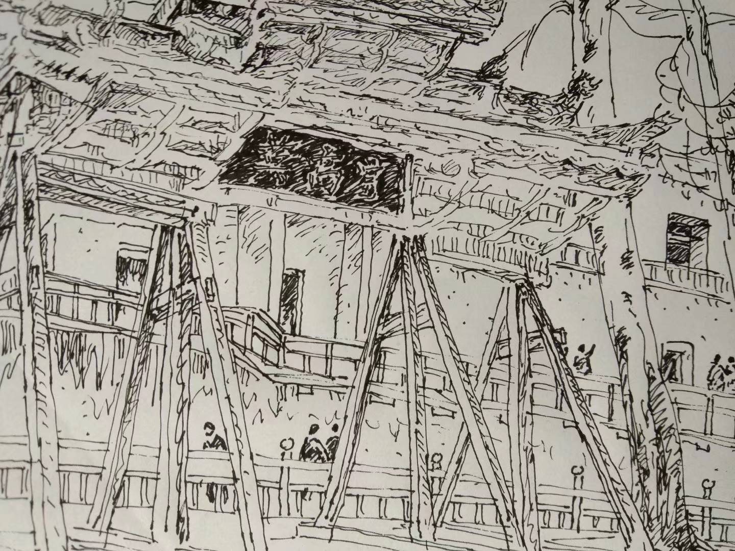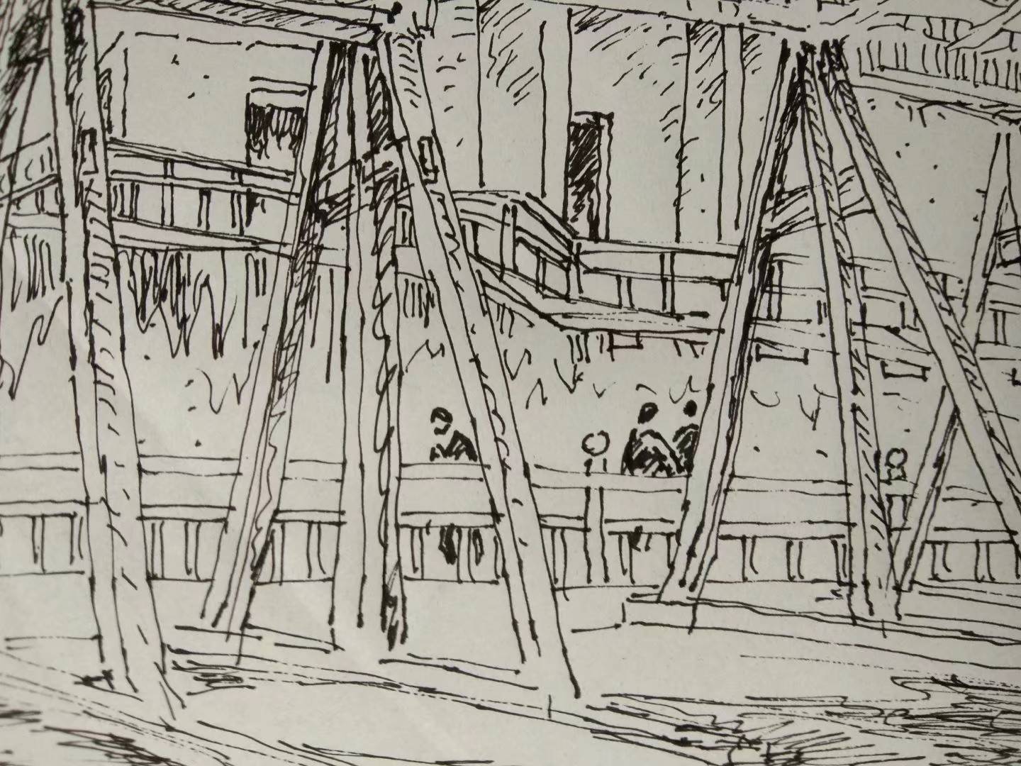 速写《敦煌莫高窟的春天》1996年4月22日,郭永洁于莫高窟