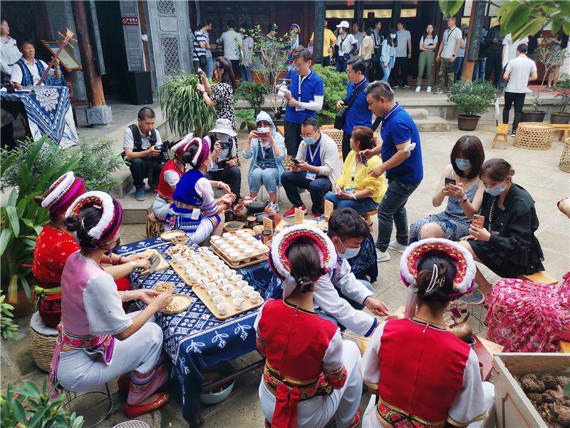 董金香介绍:“今年以来,每天都有近400名游客体验白族三道茶,大部分是团队游客,也有一部分散客。近日,我们上线了美团app,一些游客也在美团上下单体验项目。”