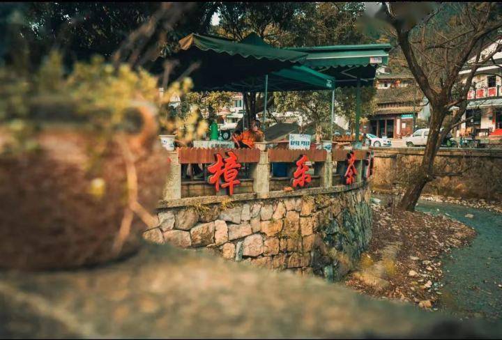 从停车场穿过一座小小的便桥就到了他们家的茶庄,一幢农家建筑和屋前流水环绕的庭院,几尊青花瓷瓶不经意地点缀在其间,许是桥边有一株腰膀粗的樟树,因此茶庄以“樟乐”为名。