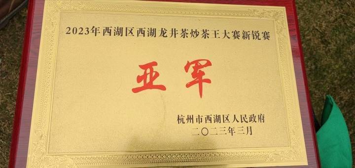 他还在西湖龙井茶炒茶王大赛中获了奖