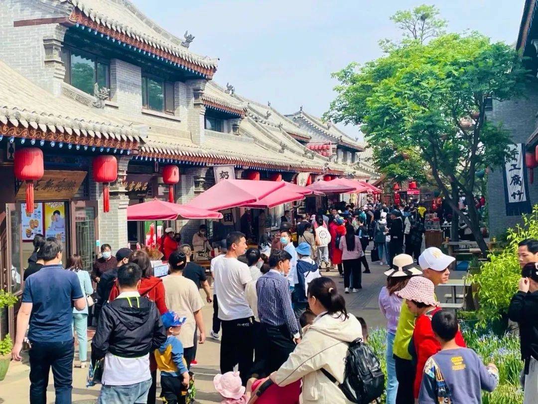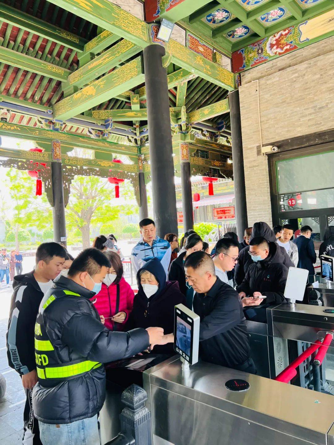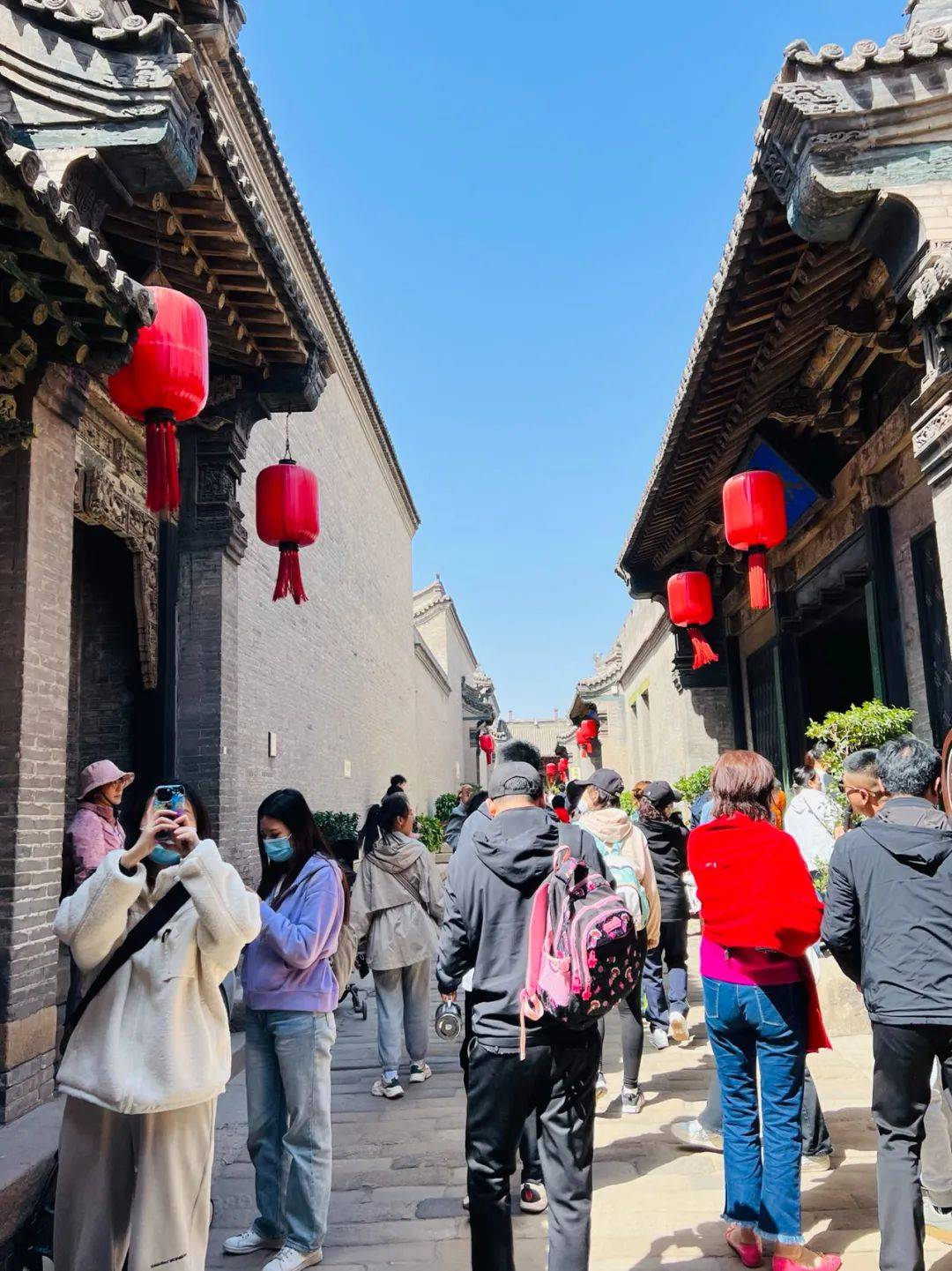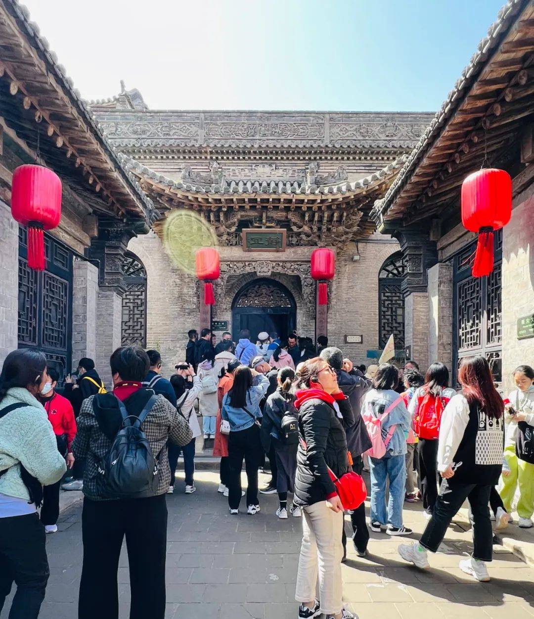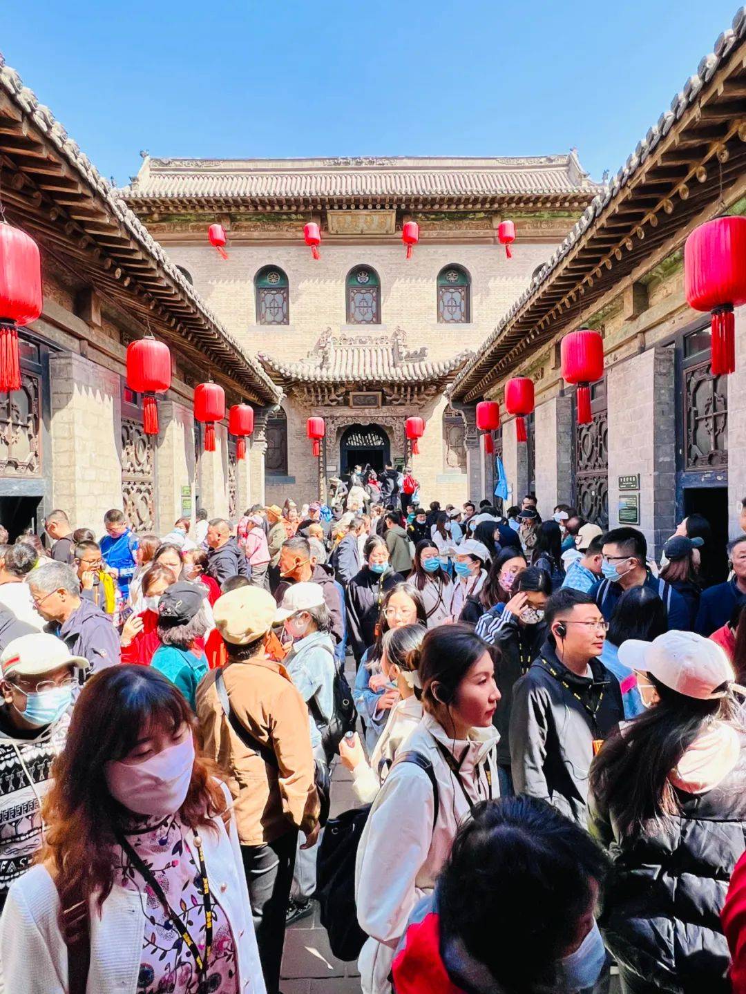 络绎不绝的旅游车辆停满了景区停车场,景区内扎堆游览、拍照、休憩的游客随处可见。游客们一同欣赏春日优美的景致,感受晋商大院厚重的文化底蕴,参与丰富的景区活动,欢庆五一劳动节。