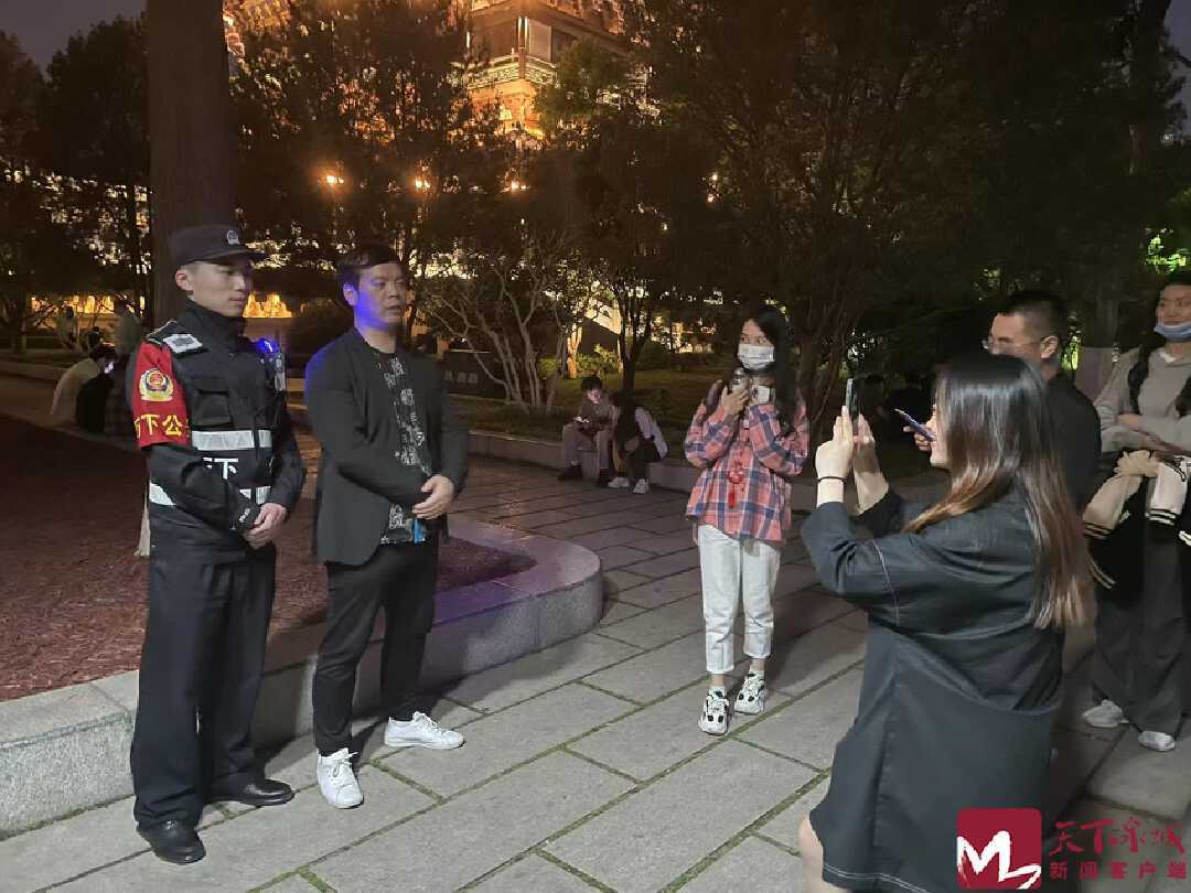 超然楼下,不少游客也被花式喊话的李天乐吸引,执勤间隙,也有不少游客提出合影的需求,在不影响执勤的前提下,李天乐也会答应游客们的请求。