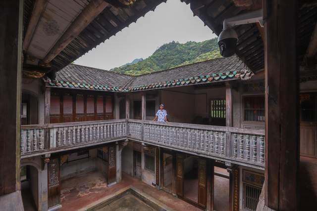 在二层继善楼中堂窗户,从这里眺望,可以看到村子四周的青山绿水,以及整个村落的美景。