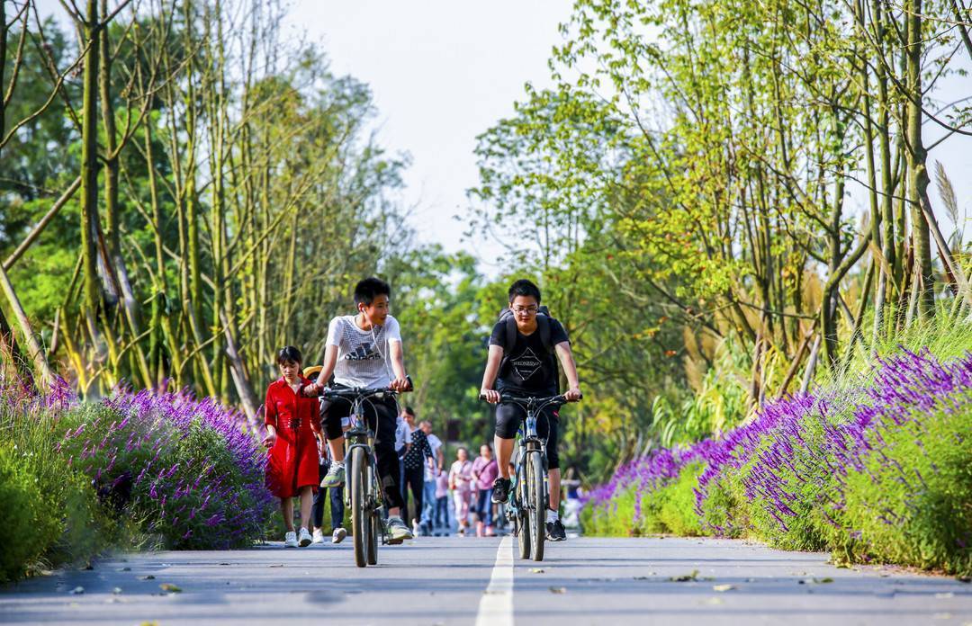 田园风光骑游线路:成都锦江绿道郊野段。