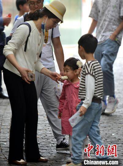图为家长给孩子吃冰淇淋。 吕明 摄
