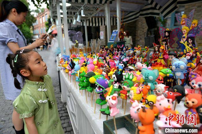 图为捏面人文创品吸引小朋友。 吕明 摄
