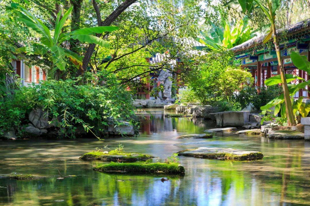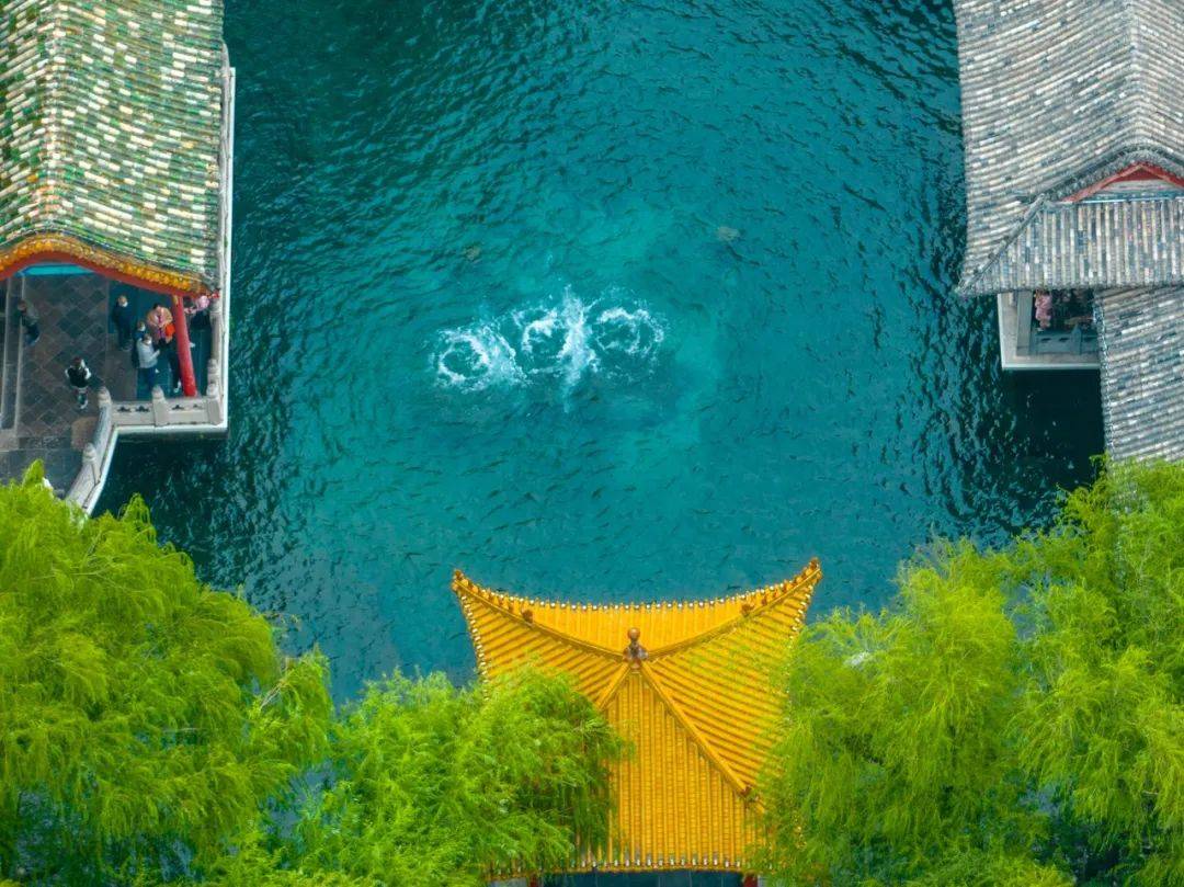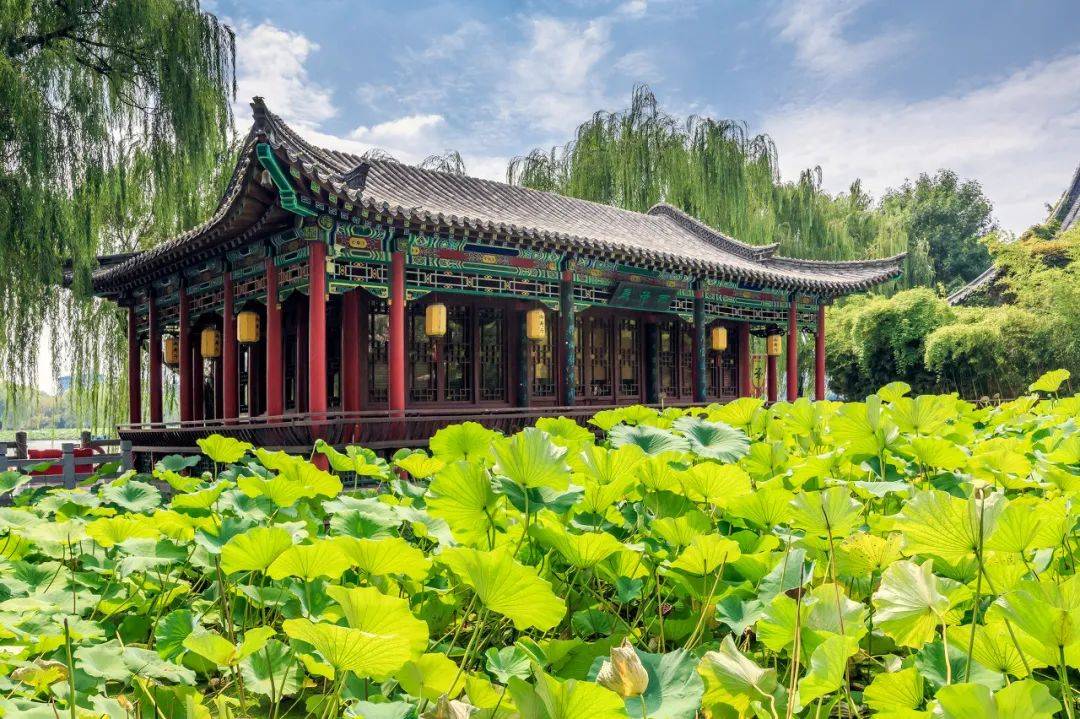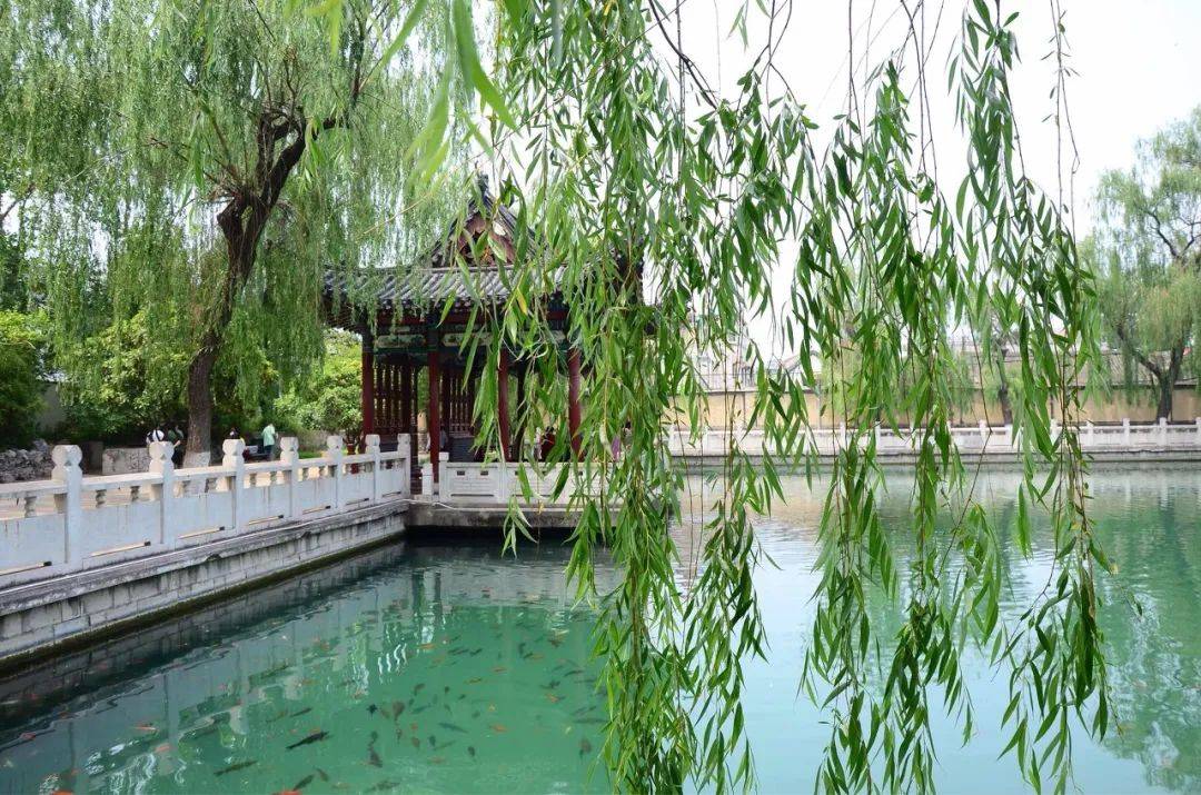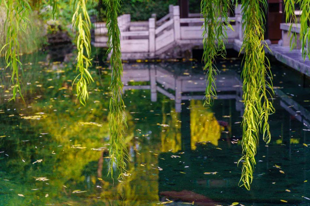 泉水、假山、垂柳、游鱼、亭台楼阁,古朴淡雅,充满诗意。