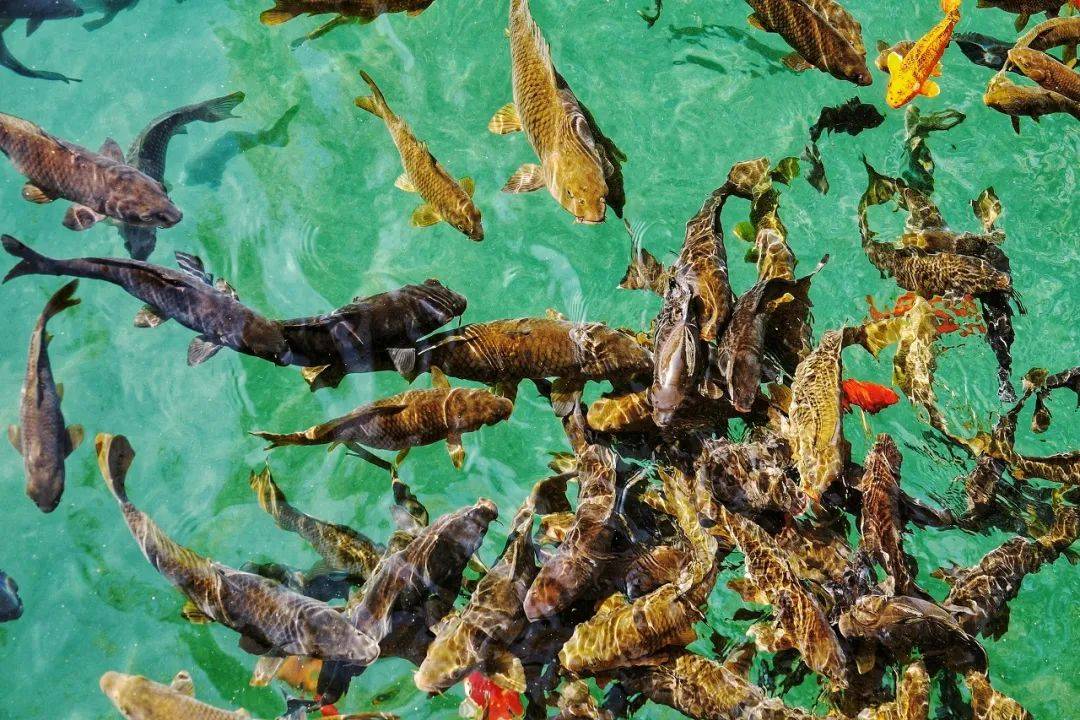 珍珠泉的另一大乐趣就是赏鱼,各色的鲤鱼犹如一块块绸缎在水面上下舞动,你还可以买点鱼食和它们互动。
