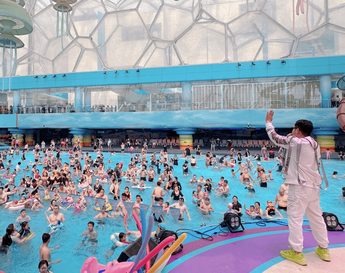 作为奥运场馆赛后运营项目,水立方嬉水乐园通过大胆的创意, 将水立方内的部分面积规划为一个相对独立的室内嬉水乐园。乐园设置了十大水上游乐项目,共有20多条各式滑道,供游客体验水上娱乐的惊险、刺激与欢乐。