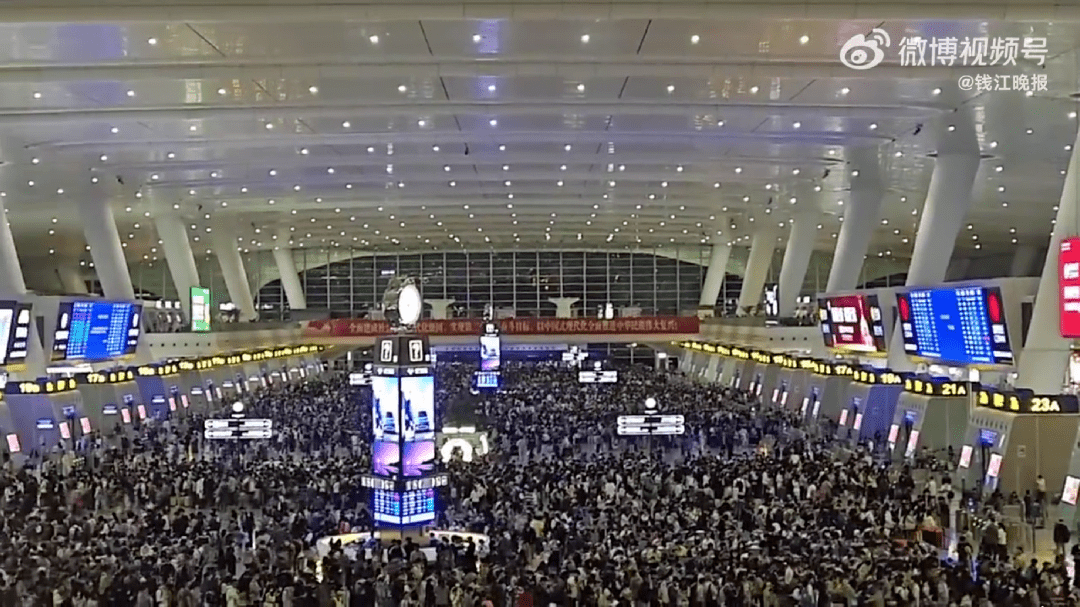 “五一”假期前夜的杭州东站 潮新闻 章克瑶 摄(视频截图)