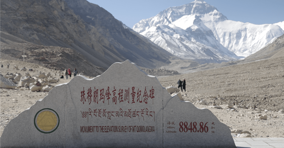 公开资料显示,这是我国首次在珠峰大本营建立珠峰复测高程纪念碑。由整块花岗岩打造而成的纪念碑,整体形状酷似珠峰外形,上面刻有汉、藏、英三种文字的“珠穆朗玛峰高程测量纪念碑”字样。