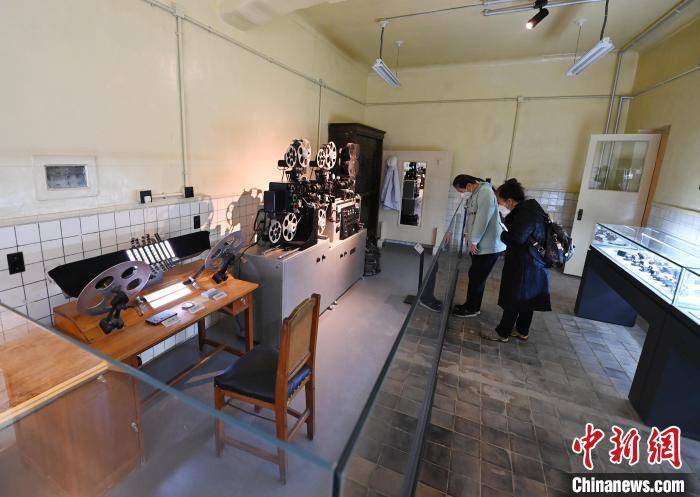 4月29日,在长影旧址博物馆,游客参观洗印车间。 张瑶 摄