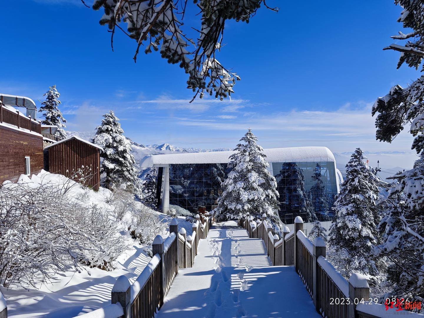 昨日的降温让西岭雪山再度迎来了一场“暴雪”,4月28日下午西岭雪山海拔3250米的日月坪区域就飘起了雪,持续一夜的降雪让今日(4月29日)的西岭雪山在“五一”小长假的第一天就向游客展示了“千树万树梨花开”的壮丽景色。据现场工作人员介绍这是西岭雪山连续两年在“五一”节期间下雪,在这个季节还能欣赏一场雪景实属非常难得,难怪有网友戏称“西岭雪山是懂假期的”。