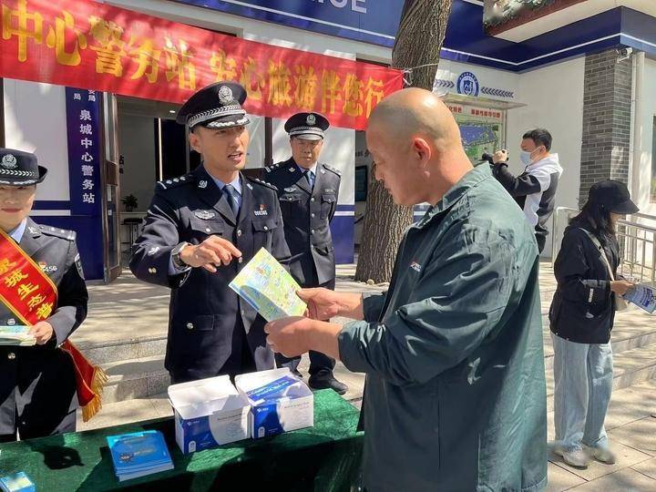 活动现场,游客在民警的带领下,沉浸式体验了中心警务站的全方位服务,不仅感受了寻人寻物、就医求助等基础便民服务,还体验了许多赋有警营文化的特色服务项目。现场民警们为游客发放了历下公安“景中警”原创手绘旅游地图,地图上不仅标注了游玩景点,还有便民服务点、警务室、警力驻巡点以及巡逻路线等,方便游客“有事情找警察”。此外,还开展了反诈、禁毒等普法宣传,让游客游得放心,玩得安心。