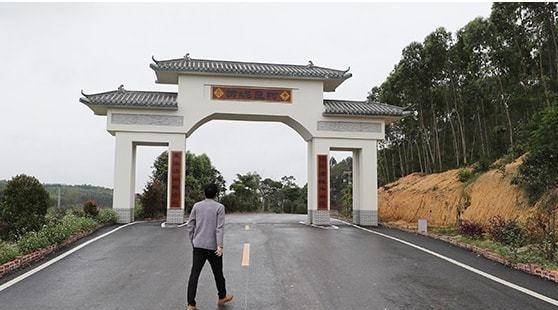 走进村口,高大巍峨的门牌楼映入眼帘,一条宽大的硬底化道路延伸到山脚下。沿着红砖砌成的阶梯拾级而上,便上到建在半山腰上的廉江市长山镇黄坭艮村。村庄依山而建,层林叠翠,鸟语花香。