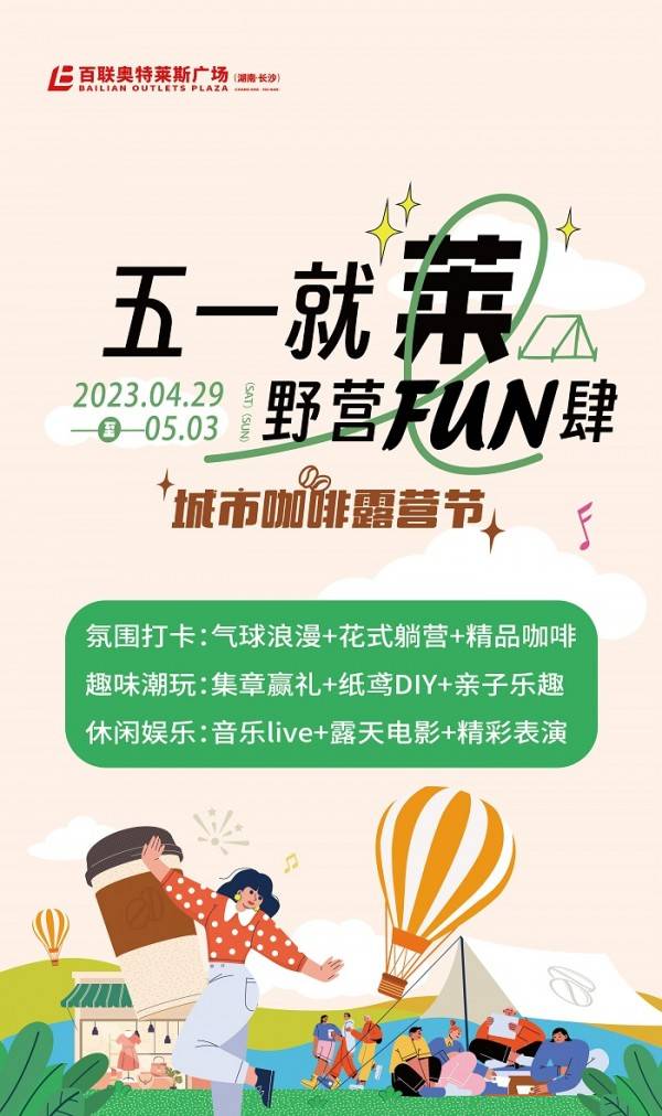 四月底五月初的星城舒爽宜人,20几度的风吹皱了一江春水,也唤醒了人们骨子里对户外和自然的向往。踏春野营,寻觅盎然生机,五一小长假在万众期待中翩然而至,你的五一假日出行地图是否已经规划好?紧邻黄花国际机场的长沙百联奥莱于五一期间重磅打造“咖啡露营节”主题活动,将咖啡的精致、野营的恣意与城市生活和谐交融,拓新城市微度假打卡地。