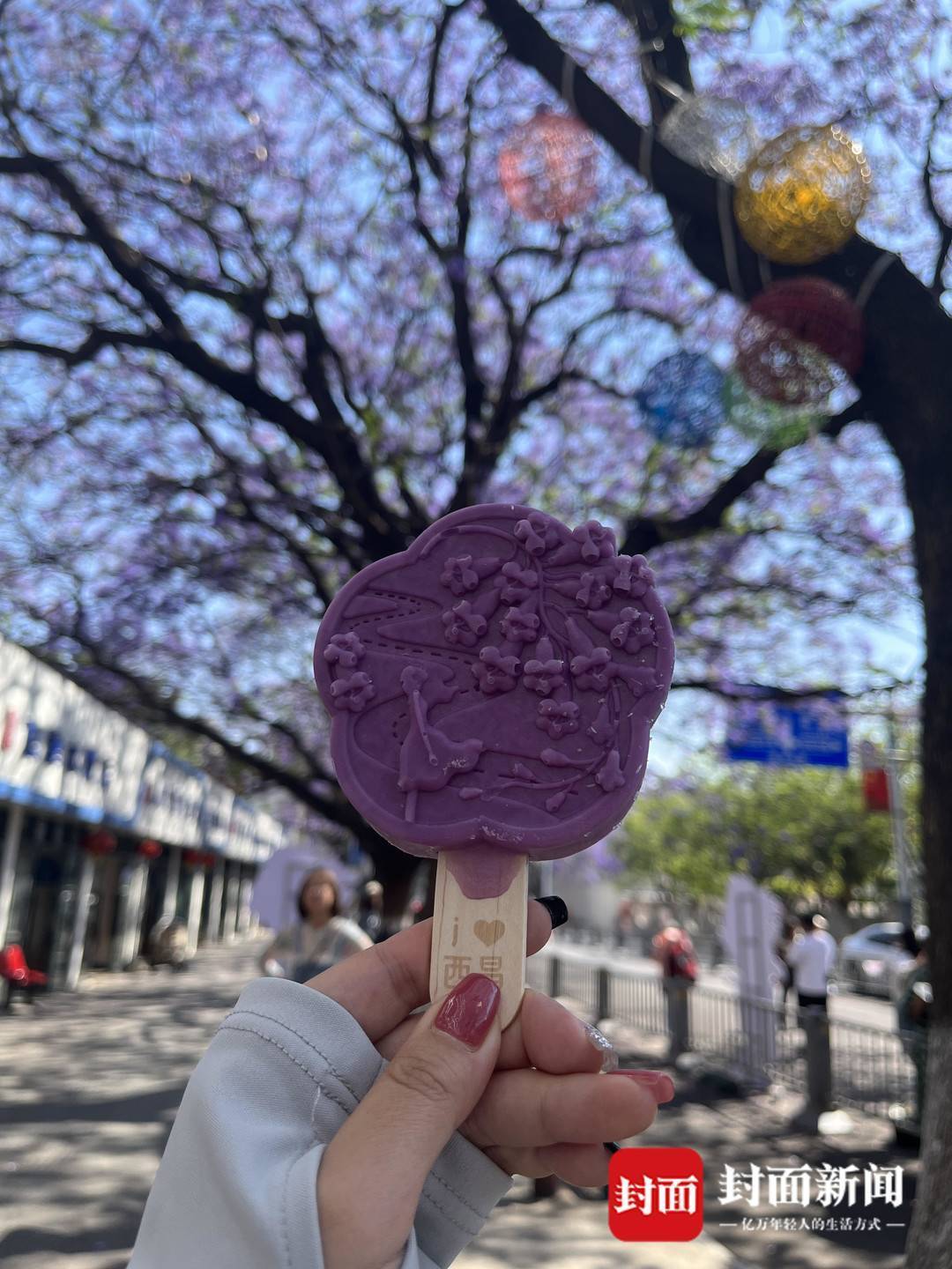 生产商也将目光对准了蓝花楹,新希望三牧乳业在4月推出“凉山雪”蓝花楹限定款包装,云南唛淇啉食品有限公司也为西昌定制出了“蓝花楹”款限定冰淇淋。对此,游客张强表示,“属于蓝花楹的周边还是太少,留不下深刻的记忆点。”