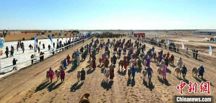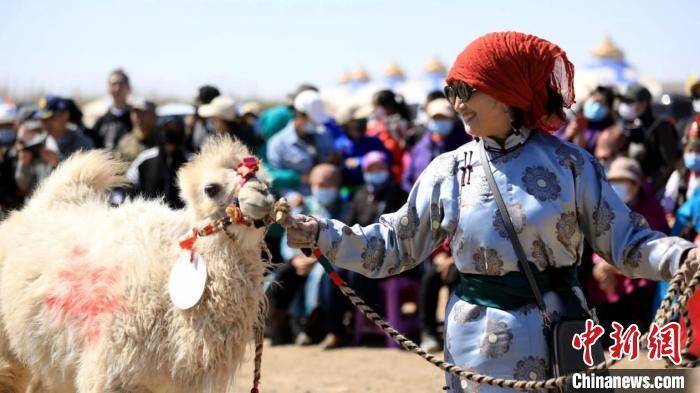 图为参赛选手带着骆驼出席“苍天千峰驼羔”文化旅游系列活动开幕式。 张春生 摄