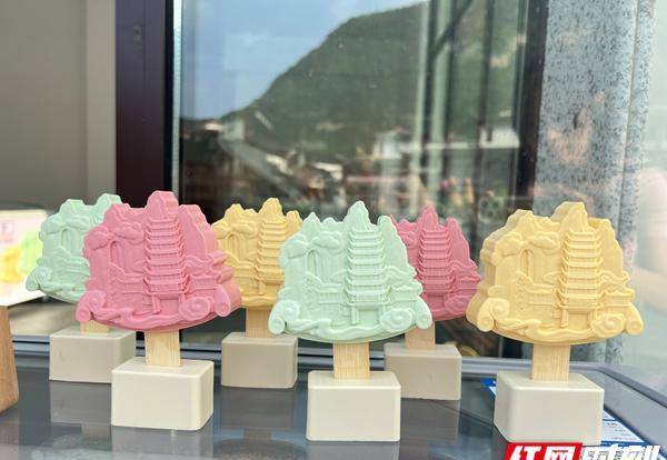 文创雪糕以当地著名景点乾坤柱、武陵源标志门和天下第一桥为设计元素。
