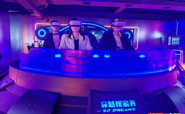 张家界元宇宙馆坐落在大氧吧广场,将张家界的自然文化和前沿元宇宙技术创新结合,实现了虚与实的交融、科技与人文的对话,变观光为体验,变游览为探索,变走马观花为身临其境,在数字科技赋能文旅产业上迈出重要一步。
