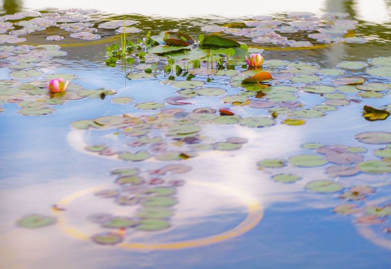 或许这些秘境是学校的“留白”。除却学习生活的空间,这一片常年被绿意包裹着,形成了校园天然氧吧。倒映在湖面上的明黄鸢尾花,仿佛烛火点亮了这片鲜有人知的空间。春日光线柔和明丽,色彩叠印,像是打翻了自然的调色盘。而在时常经过的学院楼中间的水池内,几支睡莲已悄然绽放。