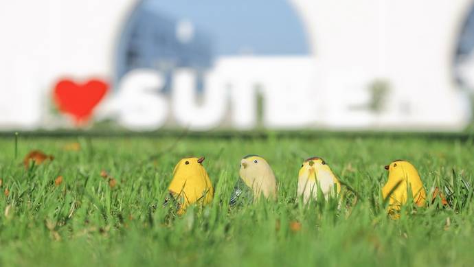 越来越多的“新朋友”成为花园里的常客,让校园变得更富有生命力。比如,松江校区常见的在枝头跳跃的松鼠,就成了校庆60周年吉祥物“贝贝”的原型。