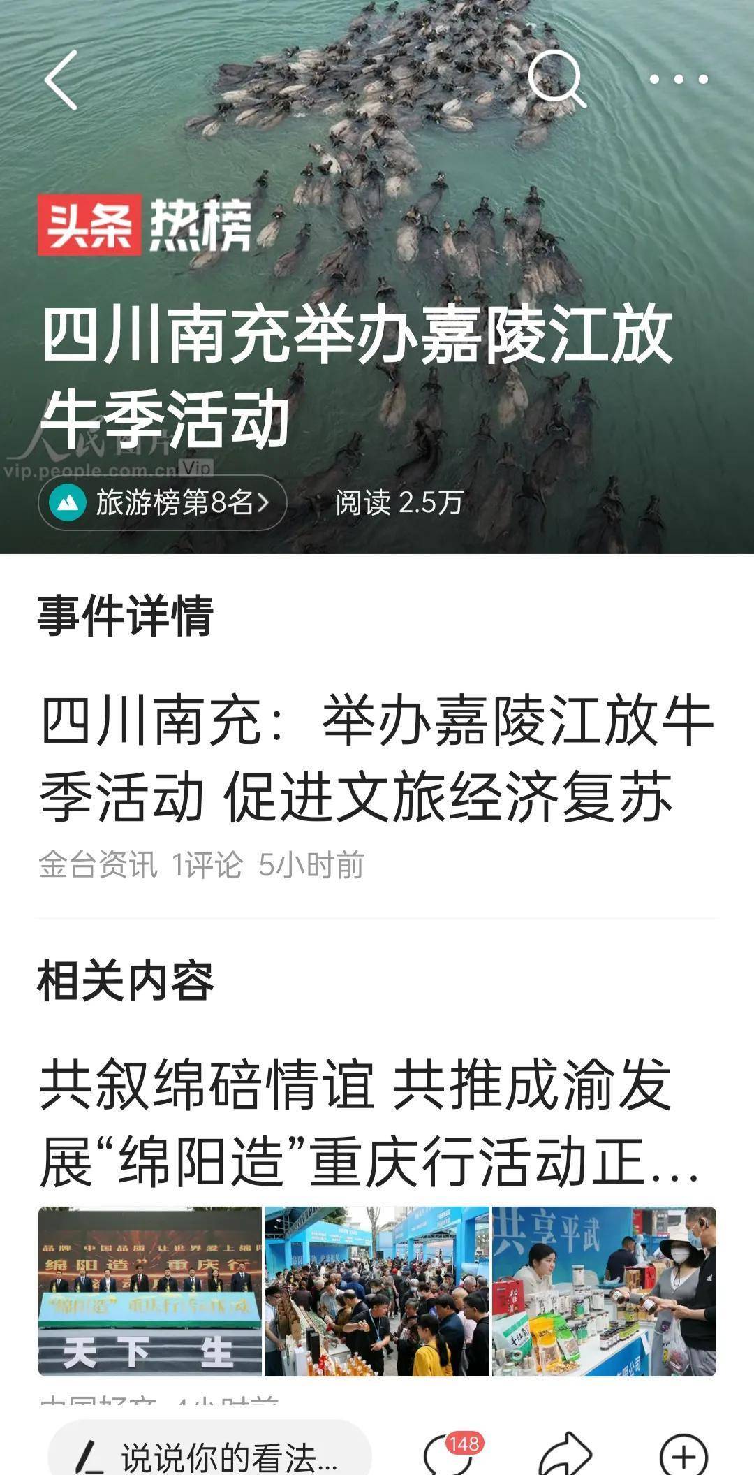 第三,为了揽客,出狠招了。你看,四川南充整了个别具特色的节目——嘉陵江放牛季活动,平时人们工作紧张,来参加这个活动可以让自己放松放松,还能跟动物接触,亲近大自然,真的是一个不错的节目。