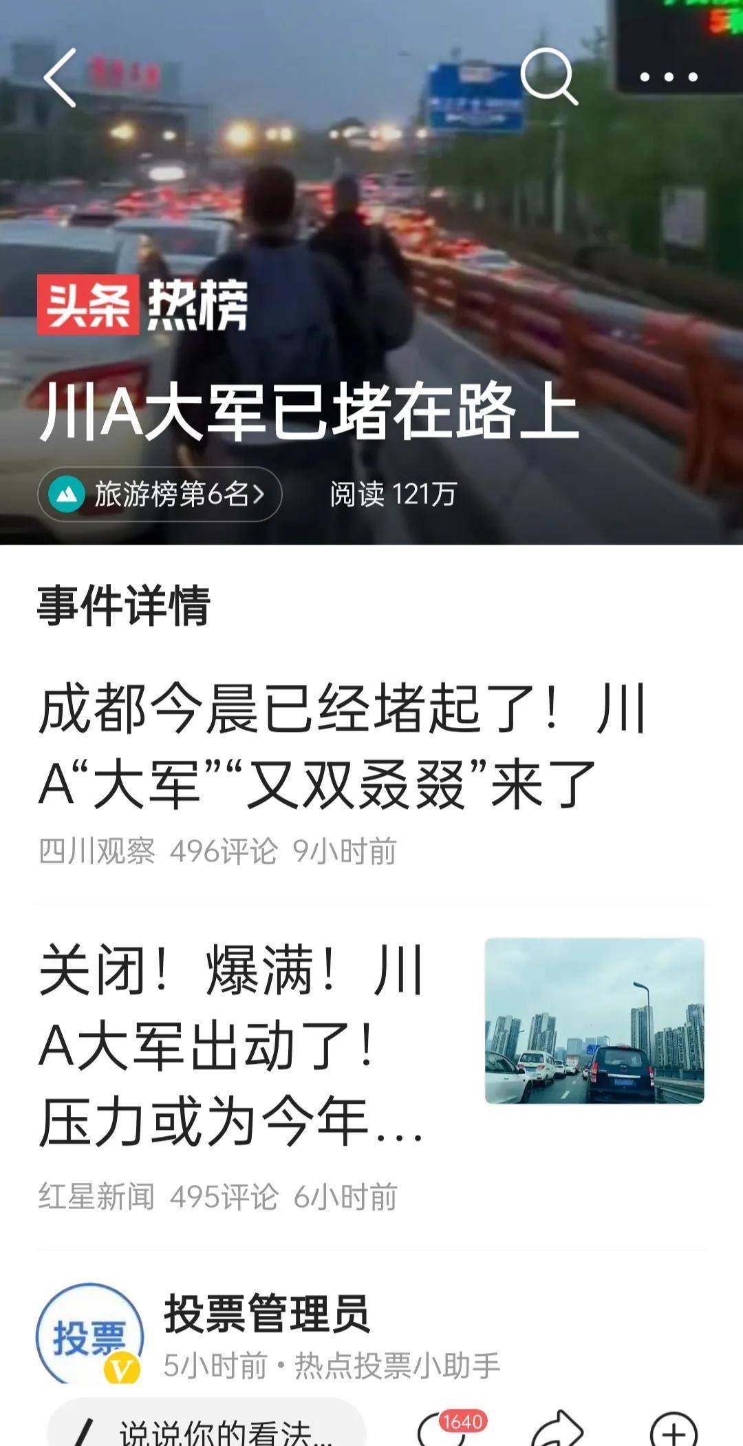 第一,川A大军已经堵在路上了。